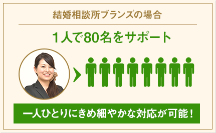 しかし「結婚相談所ブランズ」ではカウンセラーひとりあたり80名の会員様しか担当しません。