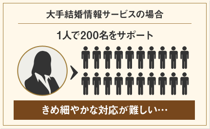 大手結婚情報サービスでは、ひとりで200名以上の会員様を担当するカウンセラーもいるようです。