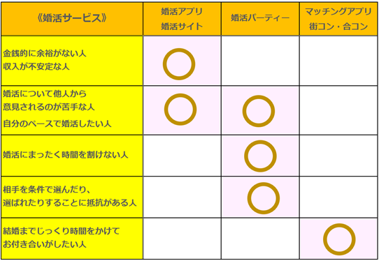 結婚相談所が向いていないタイプ別に、おすすめの婚活サービスをご紹介します。