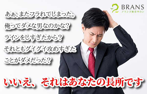 でも、マメに連絡したいのに、相手が連絡をしてくれなくて合わないとか、結婚して子どもが欲しいのに、欲しくないと言われて合わないとか、本当は長所である部分や譲れない部分を、お断りの理由にされるのであれば、それは私は反省する必要はないと思います。