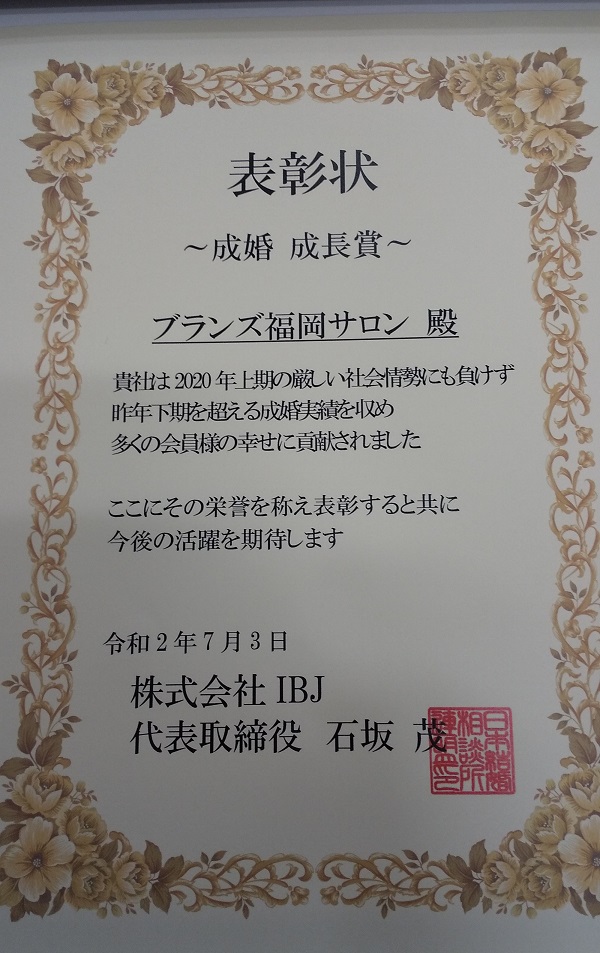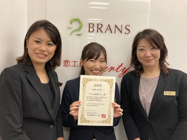 コロナ禍においても、結婚相談所ブランズの会員様とスタッフ一同が二人三脚で頑張ってきた成果がこのような形で表彰されたこと、とても感慨深いです(*^^*)