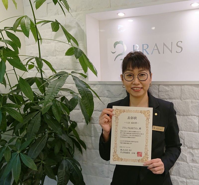 ブランズ広島サロンの2020年上半期の入会件数が昨年の下半期の入会件数を超え、表彰されました(*^^*)
