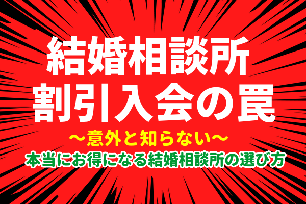 割引をしている会社の思惑はさまざまですが、お得に入会できるなら調べてみる価値はあります。ただし、最初から割り引くことを前提に高い料金に設定している結婚相談所もありますので、割引制度だけではなく活動にかかる費用の総額も併せて調べておきましょう。