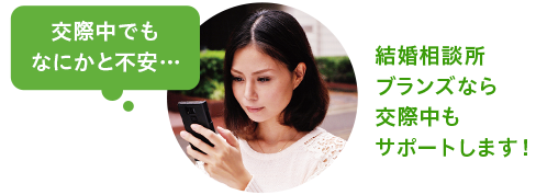 デートの頻度は少なくないかな…?メールの返信が遅いけど何か思われてるのかな?マメに連絡してるけど迷惑じゃないかな…?プロポーズして断られたらどうしよう…?など、不安と隣り合わせ…出会ったばかりの二人だからこそ交際中のサポートは重要です!時にはプロポーズのお手伝いも!最後まであなたの一番の理解者としてサポートします。