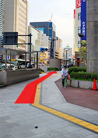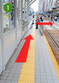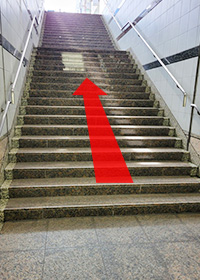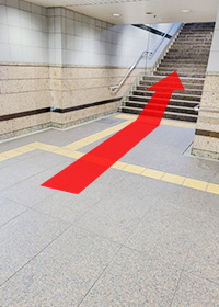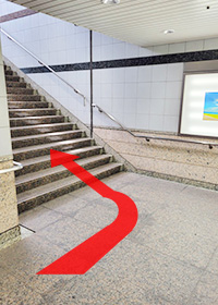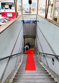 ①紙屋町東停留場を交差点方面に進むと、階段があります。