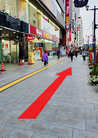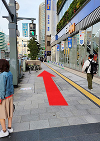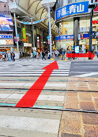 ②横断歩道を渡り、洋服の青山紀屋町店を右折します。