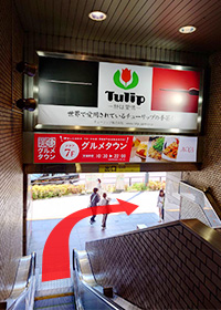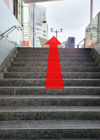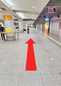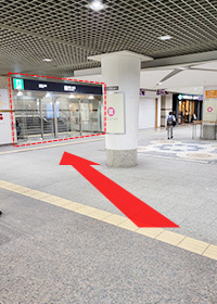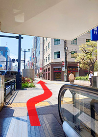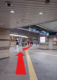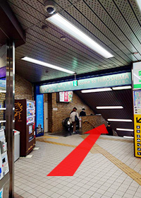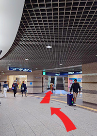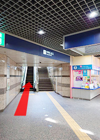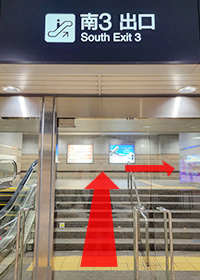 ⑥南3出口のエスカレーターを上がり踊り場に来たら右折します。
