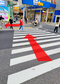 ③横断歩道を渡り、エディオン広島本店を左折します。