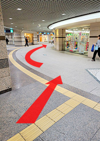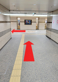 ⑥地下街の紙屋町シャレオへの降り口(中央8)が見えてきます。