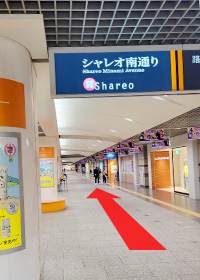 ④紙屋町シャレオに入ったらすぐ左手の南3出口方面へ進みます。