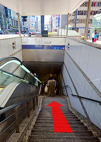 ⑦階段(中央8)を下りて紙屋町シャレオへ向かいます。
