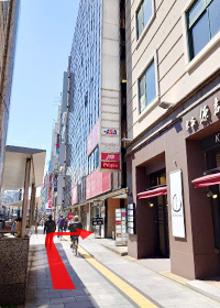 ⑧階段を上がったら、左側に紙屋町ビルが見えてきます。紙屋町ビル4Fがブランズ広島サロンです。
