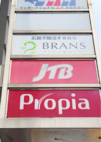 ⑫南1出口を上がって右手に紙屋町ビルの入り口があります。紙屋町ビル4Fがブランズ広島サロンです。