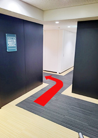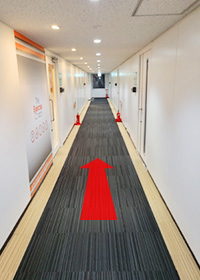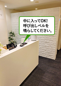 ⑧通路の一番奥の左側扉を開けると、サロンの受付があります。